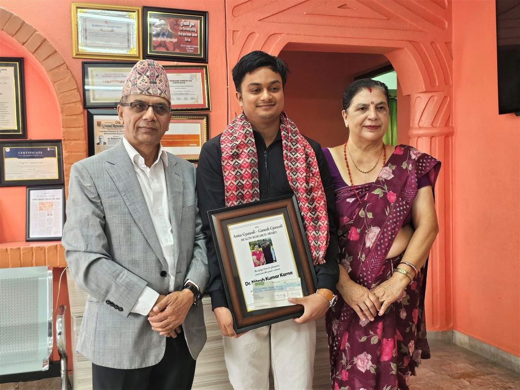 Reflecting on the award, Dr. Nitesh Kumar Karna shared, “my heartfelt gratitude goes to Dr. Bishal Gyawali sir, Ganesh Gyawali sir, and Anita Gyawali ma’am. I am deeply humbled and beyond grateful for your recognition and support. With this award, I carry not just an honor, but a responsibility to give my best in all that I can and create an impact that truly justifies the faith you’ve placed in me.”