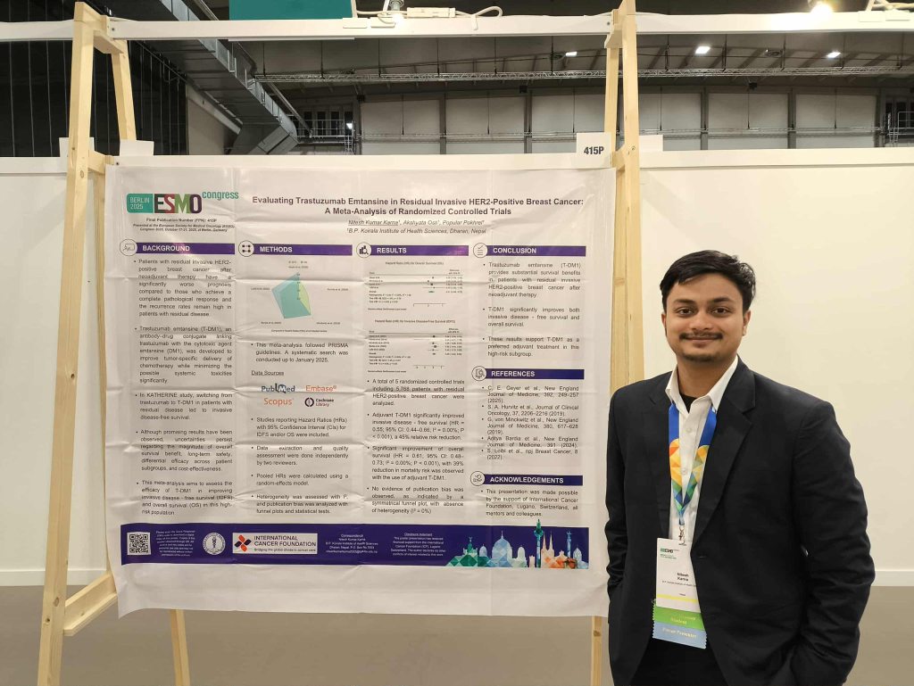 - Nitesh Kumar Karna, recipient of the 2025 Anita Gyawali-Ganesh Gyawali Health Research Award, presented his research findings at the ESMO 2025 Annual Meeting. He expressed gratefulness for receiving this award which supported his participation at ESMO 2025.